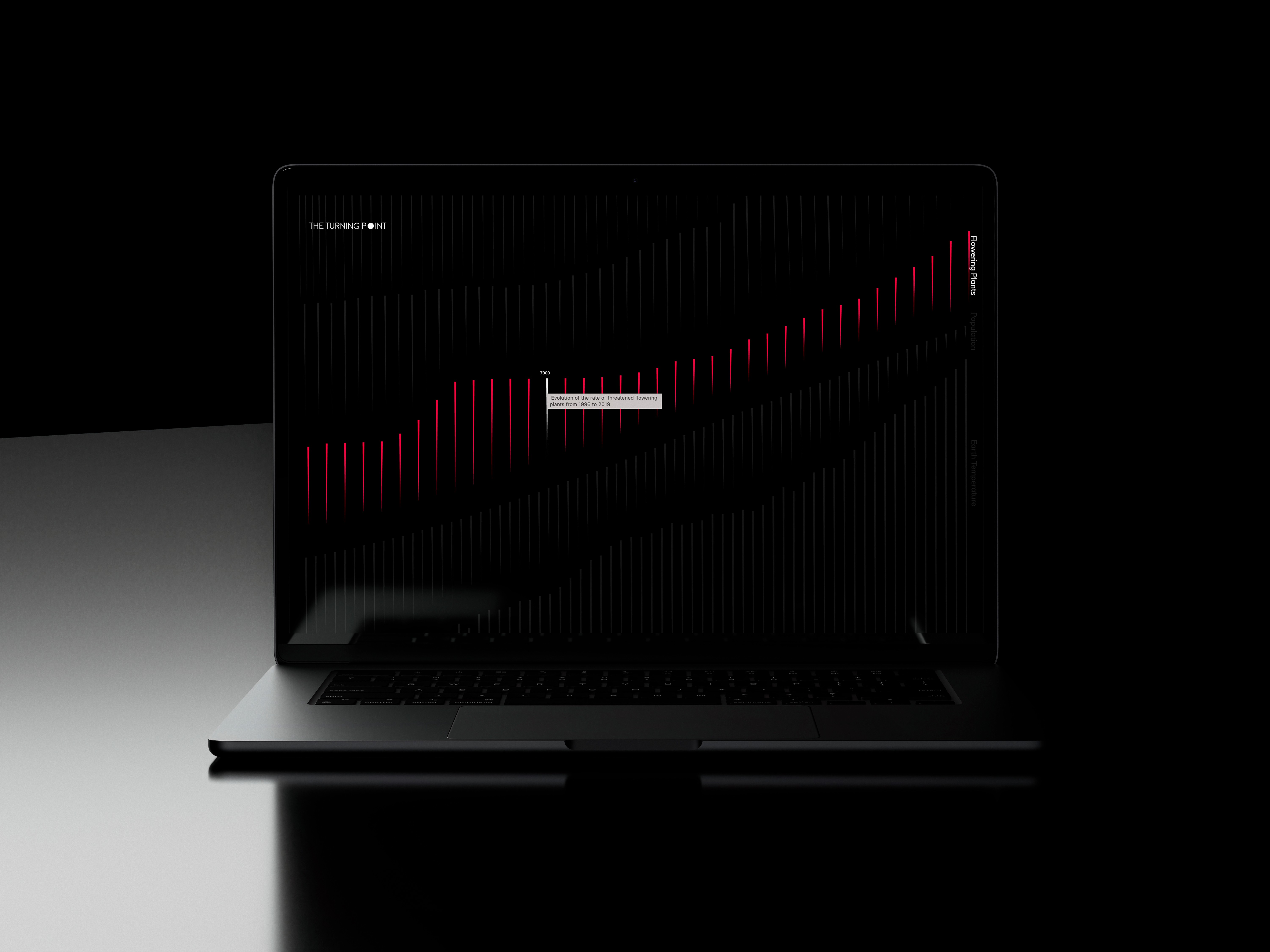 The main challenge was transforming vast, evolving scientific datasets into an experience that could both inform and emotionally engage users without oversimplifying or sensationalizing the data. The project needed to balance scientific rigor with clarity, and accuracy with impact. Additionally, the data itself was not static: population metrics, environmental indicators, and real-world events continuously evolved, requiring a system that could adapt over time. The challenge was therefore not only to visualize complexity, but to design a living, scalable experience capable of reflecting an ongoing planetary crisis.